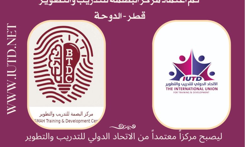 في خطوة هامة تعزز من مكانة قطاع التدريب والتطوير المهني في العالم العربي ، حصل “مركز البصمة للتدريب والتطوير” على الاعتماد الرسمي من “الاتحاد الدولي للتدريب والتطوير” (IUTD) .