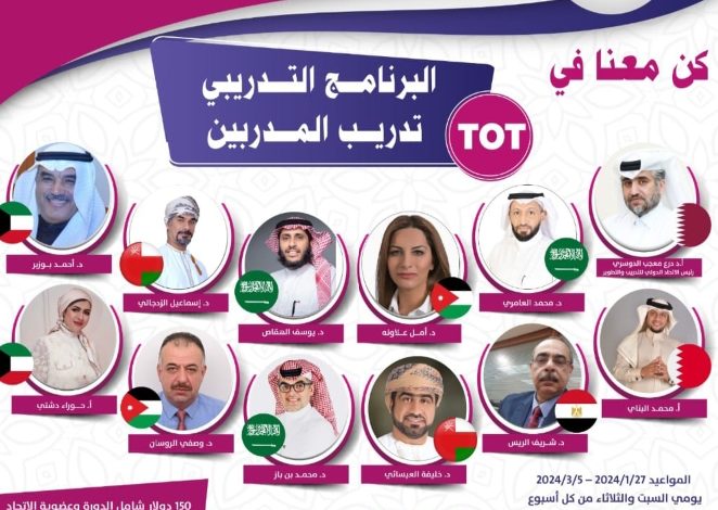 يقدم الاتحاد الدولي للتدريب والتطوير برئاسة الأستاذ الدكتور درع معجب الدوسري البرنامج التدريبي ( تدريب المدربين TOT) دعما للشباب العربي .
