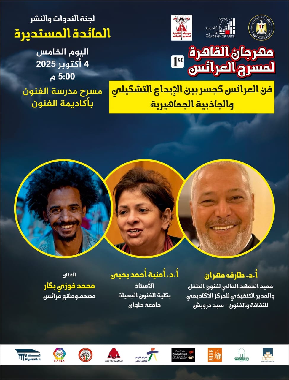 الجدير بالذكر ان فعاليات اليوم الثالث 4 أكتوبر ستبدأ بالفرع الثاني لأكاديمية الفنون الساعة الخامسة مساء لمناقشة المحور الخامس تحت عنوان فن العرائس كجسر بين الابداع التشكيلي والجاذبية الجماهيرية وذلك ضمن سلسلة الموائد المستديرة الخاصة بالمهرجان بمسرح مدرسة الفنون، ثم يتبعها مجموعة من العروض المستقلة: عرض انتاج دمية دول بعنوان «خيال» سيعرض ثلاث مرات في: الساعة 5.45 و 6.30 بمسرح الفنون 2 ثم الساعة 7.15 بمسرح نهاد صليحة، وبالتوازي معه سيعرض عرض من انتاج عمرو صلاح بعنوان «ثلاثة عروض فردية» الساعة السادسة بمسرح مدرسة الفنون 2 ، وأخيرا عرض من انتاج فرقة دارك للعرائس التابعة لمؤسسة دارك للتنمية الثقافية والفنية بعنوان «متوالية متلازمة سليم» الساعة 6.45 مساء بمدرسة الفنون 2.