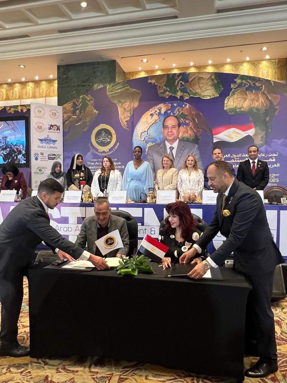 علي هامش قمة الاستثمار العربي الإفريقي والتعاون الدولى، وبحضور السيدة سوزان موهويزي نائبة أولى رئاسية عن فخامة السيدة جانيت موسيفيني حرم رئيس أوغندا، وقعت د. هدى يسى ، رئيس اتحاد المستثمرات العرب على بروتوكول تعاون مشترك مع الشركة البورسعيدية للأعمال الهندسية والإنشاءات البحرية، إحدى الشركات التابعة لهيئة قناة السويس ووقعه ا. هيثم كمال نائبا عن الشركة