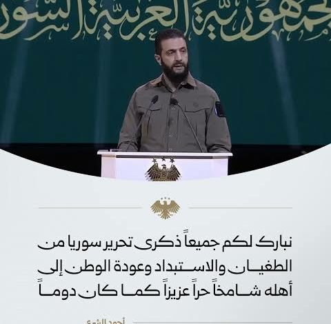 بالفيديو:كلمة أحمد الشرع بمناسبة الذكرى الأولى لسقوط نظام بشار