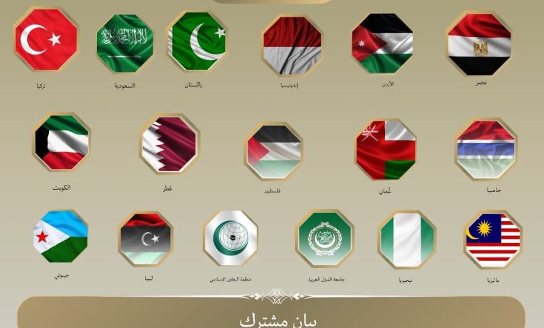 تُدين جمهورية مصر العربية، والمملكة الأردنية الهاشمية، وجمهورية إندونيسيا، وجمهورية باكستان الإسلامية، وجمهورية تركيا، وجمهورية جيبوتي، والمملكة العربية السعودية، وسلطنة عُمان، وجمهورية غامبيا، ودولة فلسطين، ودولة قطر، ودولة الكويت، ودولة ليبيا، وماليزيا، وجمهورية نيجيريا الاتحادية، وجامعة الدول العربية، ومنظمة التعاون الإسلامي، بأشدّ العبارات، مصادقة الكنيست الإسرائيلي على مشروعَي قانونين يهدفان إلى فرض ما يُسمى بـ “السيادة الإسرائيلية” على الضفة الغربية المحتلة، وعلى المستوطنات الاستعمارية الإسرائيلية غير القانونية؛ باعتبار ذلك انتهاكًا صارخًا للقانون الدولي ولقرارات مجلس الأمن التابع للأمم المتحدة، ولا سيما القرار رقم (٢٣٣٤)، الذي يُدين جميع الإجراءات الإسرائيلية الرامية إلى تغيير التركيبة الديمغرافية والطابع والوضع القانوني للأرض الفلسطينية المحتلة منذ عام ١٩٦٧، بما في ذلك القدس الشرقية — إضافة إلى الرأي الاستشاري الصادر عن محكمة العدل الدولية، الذي أكّد عدم شرعية الاحتلال الإسرائيلي للأراضي الفلسطينية، وبطلان إجراءات بناء المستوطنات وضمّ الأراضي في الضفة الغربية المحتلة. ويؤكّدون مجددًا أن لا سيادة لإسرائيل على الأراضي الفلسطينية المحتلة.