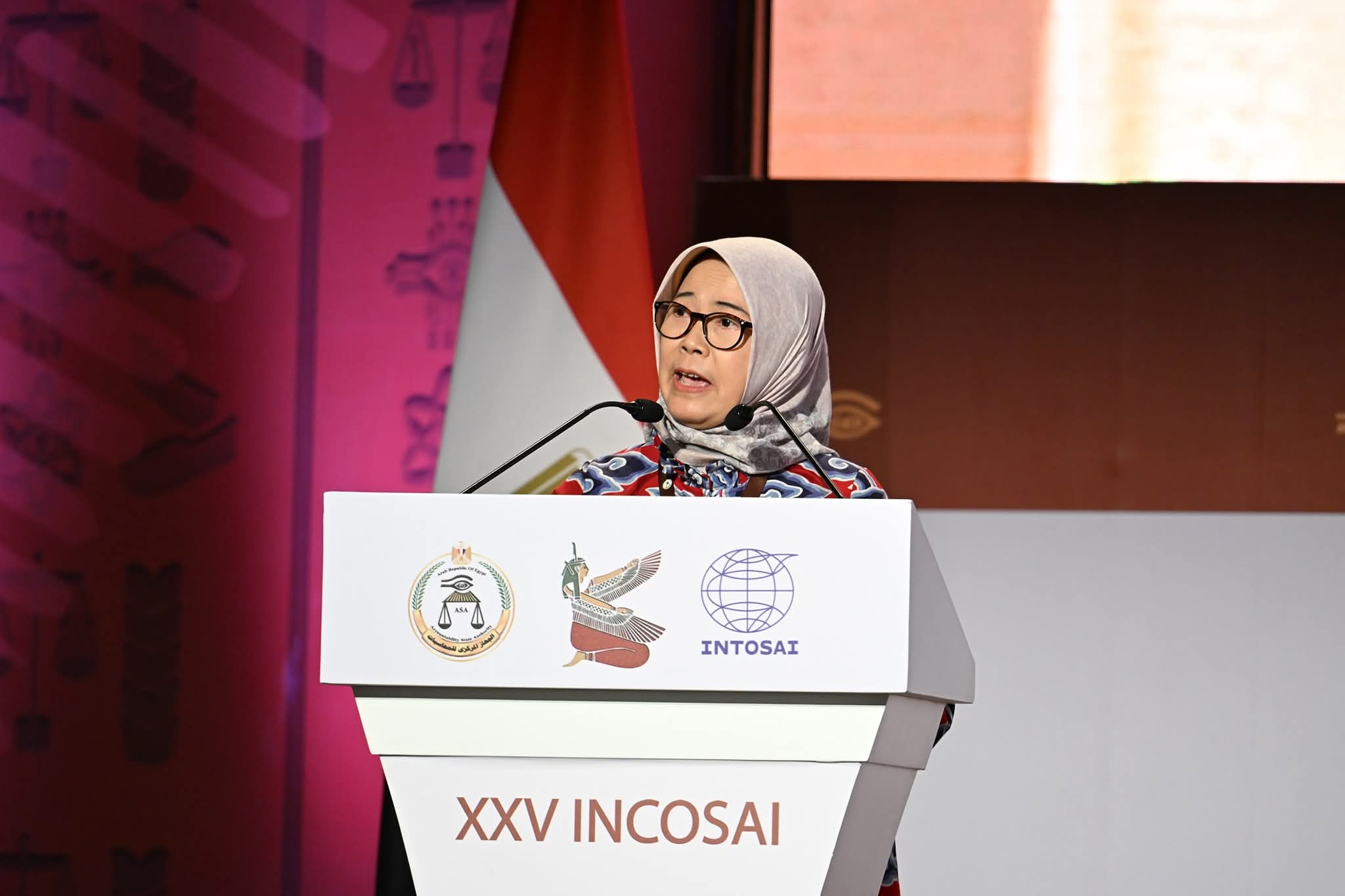 وفي كلمته بهذه المناسبة، أعلن معالي المستشار محمد الفيصل يوسف، رئيس الجهاز المركزي للمحاسبات ورئيس الإنتوساي، عن قرار المصادقة الرسمية على استضافة إندونيسيا للإنكوساي السادس والعشرين، موجهًا التهنئة لمعالي السيدة إسما ياتون، رئيس مجلس التدقيق بجمهورية إندونيسيا، ومتمنيًا لها ولبلادها كل التوفيق في تنظيم هذا الحدث العالمي. وأشاد بما حملته كلمتها من تطلعات واعدة لمستقبل المنظمة، مؤكدًا أن انعقاد المؤتمر القادم في بالي عام 2028 سيُسهم في تعزيز مسيرة الإنتوساي نحو مزيد من التعاون وتبادل المعرفة.