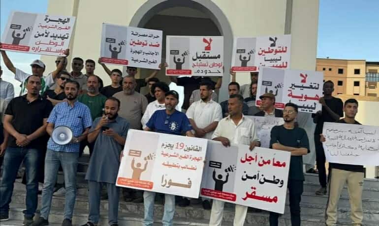 ومؤخرا، تصاعدت مظاهرات فى عديد المدن الليبية، بينها العاصمة طرابلس ومصراتة غرب البلاد، مناهضة لوجود المهاجرين غير النظاميين، وتعالى معها خطاب الكراهية والتحريض ضد الوافدين، رافضين ما وصفوه بمخططات التوطين، ومطالبين بالترحيل الفورى لكل الأجانب القاطنين ليبيا بطرق غير نظامية.