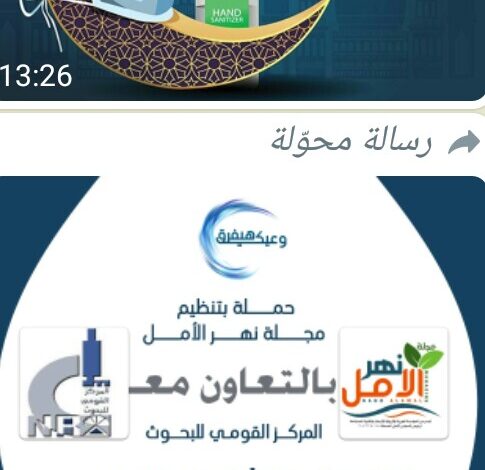 ضمن فعاليات اليوم السابع عشر من حملة “وعيك هيفرق” التي تنظمها مجلة نهر الامل بالتعاون مع المركز القومي للبحوث وبمشاركة الاتحاد العربي للتنمية المستدامة والبيئة والمؤسسة العربية الافريقية للابحاث والتنمية المستدامة.