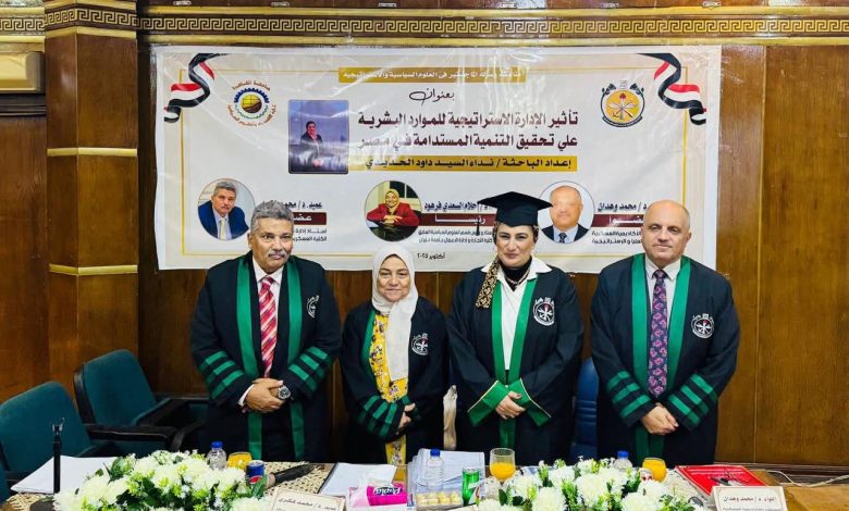 وكلية الإقتصاد والعلوم السياسية بجامعه القاهرة ، عن رسالة بعنوان ،( تأثير الإدارة الإستراتيجية للموارد البشرية على تحقيق التنمية المستدامة فى مصر )