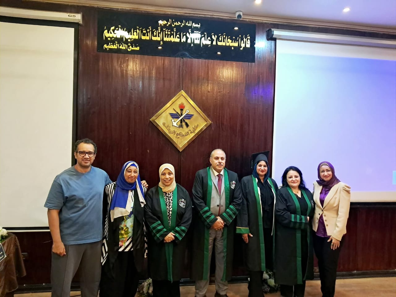 وعقدت جلسة المناقشة بمقر الأكاديمية العسكرية للدراسات العليا والإستراتيجية بحضور أصدقاء وأسرة الباحثة .