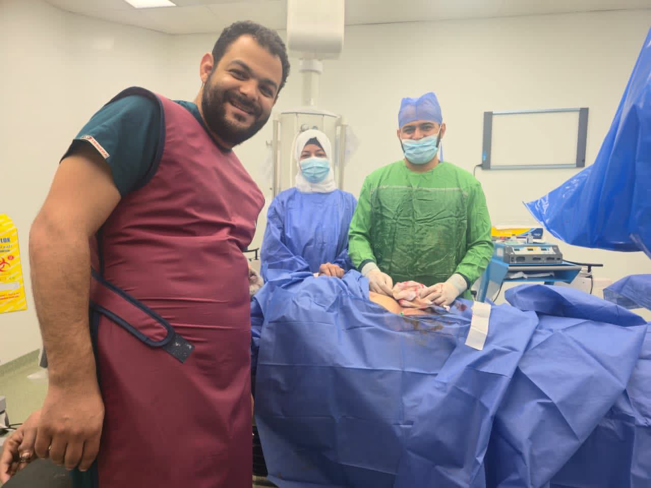 ويتقدم مدير المستشفى استاذ دكتور سيد النحاس بخالص الشكر والتقدير لأطباء قسم الأوعية الدموية بقيادة د. كريم كمال على جهودهم المتميزة في إنجاح الإجراء، ولأطباء **قسم التخدير بقيادة د. هشام سعيد لدورهم الحيوي في تأمين الحالة، إلى جانب **فريق التمريض الذي ساهم بكفاءة في كافة مراحل التعامل مع المريض.