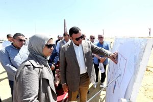 كما أنه جارٍ تنفيذ المرحلة الأولى من خزان المياه والرافع بسعة ٣٦٠٠٠ متر مكعب، وجارٍ تنفيذ أعمال شبكات الطرق والمرافق بالمنطقة، وتشمل: شبكات المياه أقطار من ۲٠٠ مم حتي ۱۲۰۰ مم بإجمالي أطوال ٩٠ كم، وشبكات الصرف أقطار من ۲۰۰ مم حتي ١٤٠٠ مم بإجمالي أطوال ١١٣ كم أعماق من ١.٥م حتي ١٠.٥م، وشبكة الري أقطار من ٢٠٠ مم حتى ۱۰۰۰ مم بإجمالي أطوال ٨٨ كم، وشبكات الطرق بطول ٩٠ كم، ١٠ كم مرحلة أولي ويتم التحضير للمرحلة الثانية بإجمالي ١٥ كم.