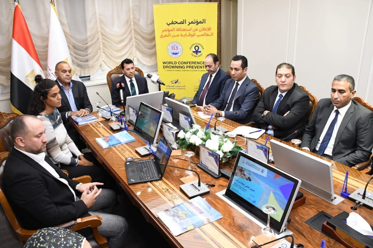 وزير الشباب يشهد المؤتمر الصحفي للإعلان عن استضافة مصر للمؤتمر الدولي للحد من الغرق بشرم الشيخ
