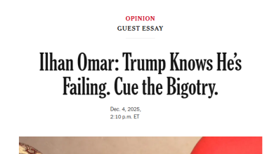 متابعة هاني حسبو إلهان عمر عضوة مجلس النواب الأمريكي ترد على “ترامب” من خلال مقال في “نيويورك تايمز” كتبت تقول:…
