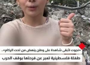 كتب/ هاني حسبو. طفلة فلسطينية تبعث رسالة فرحة وسعادة لوقف إطلاق النار في غزة وتقول:”الحمدلله نجوت من القصف والموت والرعب…