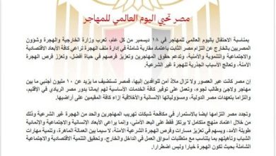 كتبت / عزه السيد بمناسبة الاحتفال باليوم العالمي للمهاجر في ١٨ ديسمبر من كل عام، تعرب وزارة الخارجية والهجرة…