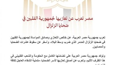 مصر تعرب عن تعازيها لجمهورية الفلبين